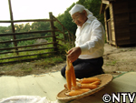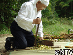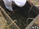 | 11月 サイレージ完成 完成したサイレージを掘り出す。乳酸発酵がちゃんとされているだけに、酸っぱい香りがした。 マサヨ一家、皆おいしそうに食べていた。 |