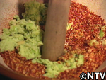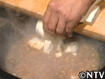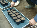 | 2007年3月 空豆の種まき 豆板醤の主原料の1つ「空豆」の種を、ポットに丁寧に蒔いていく。 日本では空豆の栽培は江戸時代から始まり、餅やお菓子としても食された栄養満点の食材。豆のサヤが空に向かってなることから「空豆」という名前がついたとされている。 そんな空豆の種は、普段私達が食しているものを乾燥させたもの。水をたっぷりあげて、後はハウスの中で芽が出るのを待つ。 |
