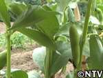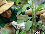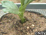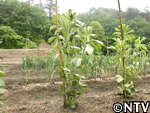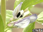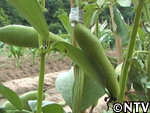 | 2007年6月 空豆の花咲き/摘心/摘花 悪天候が続いたが、高さ1m20cmまで生長した。 空豆の綺麗な花も咲き始め、摘花、摘心の時期を迎えた。 摘花・摘心は、実の生長を促すため、大きく充実した実を収穫するために行う作業。 明雄さんいわく、空豆は「1つの節に花1個」にするらしい。 明雄さん指導のものと摘花、摘心を行った。 |