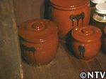 2007年 10月 豆板醤を母屋へ移動 豆板醤ハウスの温度が19℃まで下がってきたので、常に炭で暖をとっている母屋の戸棚に移動した。戸棚の温度は22℃。ここからは熟成期間。願いをこめ数ヶ月待つことに。 |