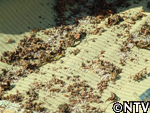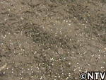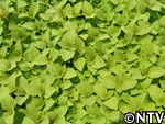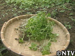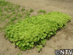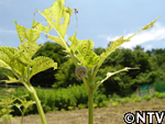 | 6月中旬 間引き すべての苗に満遍なく日光が当たるように間引きをする。 間引きしたエゴマの苗を食べてみると、とても苦かった。 |