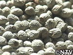 9月下旬 結実 花がほぼ咲き終わり、実が出来ているか確かめてみると、白い綺麗な実ができ始めていた。実が種へと成熟するには開花後1ヶ月かかるということで、しばらく様子を見ることに。 |