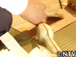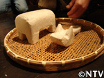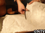 | 4.型切り 乾燥が終わったら、外側の和紙を小刀で切り、型を取り出す。 |