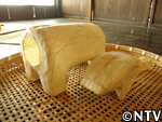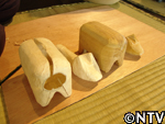 | 1.木型づくり 木で型を作る。この作業はノミなどを使い丸みのある型を作る事が重要。 |