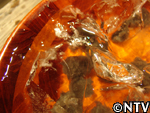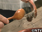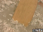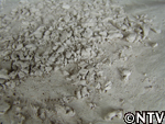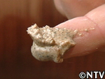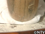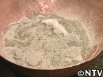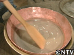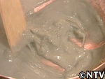 しかし、底には不純物も混ざって沈んでおり、ここから再び水を加えてかき混ぜては沈殿を待って、不純物のみを捨てるという作業が続いた。2日おきに計4回繰り返し、軽い不純物は全く浮かない状態となった。 |