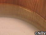 3日後樽の中を見てみると、水面には皮のクズや油分が浮いていることが確認できた。さらに上水を慎重に捨てると、デンプンが沈殿しているのが確認できた。