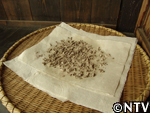 最後に微妙に残った不純物やゴミを目の細かいフルイにかけて取り除く。