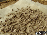 2時間後、デンプンが再び沈殿したら水を捨て、和紙を敷いたザルにデンプンを落とし、陰干しで乾燥させる。