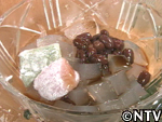 | 2009年 8月 「あんみつ」づくり 待ちに待った寒天料理「あんみつ」を作る。 手づくりの寒天はツルンとした食感で癖もなく、食べやすい味だった。 |