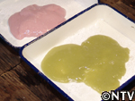 | 【求肥】 材料:白玉粉…100g/水…300cc/砂糖…200g/水…80cc 梅汁…大さじ4/ヨモギ汁…大さじ6 @白玉粉と水を鍋に入れ、練り混ぜる。 A梅汁を入れる。 B鍋を火にかけて15分ほど練る。 C餅の匂いが出てきたら砂糖水を入れてさらに練る。 D木ベラに餅がくっつくようになってきたら火から上げる。 E片栗粉を引いたバッドに流しこみ上からも片栗粉を振り固まるのを待つ。 F固まったら四角く切る。 (※ヨモギの場合はAでヨモギ汁を入れる。ヨモギ汁はヨモギを茹でて細かく刻み、汁を絞ったもの) |