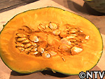 | 材料 《皮》 小麦粉 200g、ハチミツ 130g、油 70g、塩 1g 《餡》 カボチャ 400g、砂糖 30g、塩 2g、ゴマ油 10g、ヒマワリの種 適量、カボチャの種 適量 |