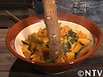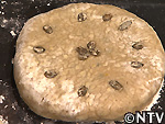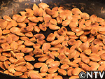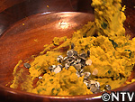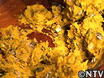 | @餡を作る 細かく切ったカボチャをせいろで5分ほどを蒸し、すり鉢でつぶして砂糖、ゴマ油、塩、ヒマワリの種、カボチャの種を加えて混ぜる。 カボチャ・ヒマワリの種は、実がはじけるまで炒り、皮を割って中身を取り出しておく。 |