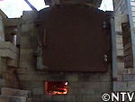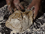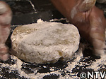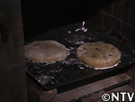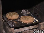 | C焼く 成形した月餅を鉄板の上にのせ、220℃程に加熱した登窯のパン窯で約40分加熱すれば完成。 |