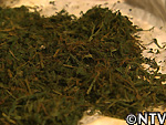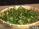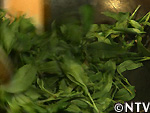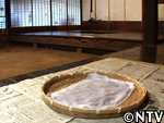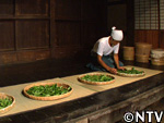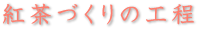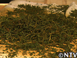 工程@ 萎凋(いちょう) 摘んだ二番茶を母屋内に運び、14時間陰干しする。こうする事によって、萎れて加工しやすくなる上、新緑の香りが揮発し、茶葉内部に柑橘系の香り成分が増す。特に実働はないけれど、寝かす事で紅茶の香り成分が10倍になるので重要な工程。 |