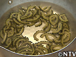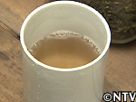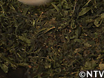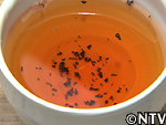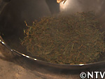 | 工程C 乾燥 2時間後、布を開けて見てみると、放って置いただけの茶葉がかなりの赤さになっている事に驚かされた。 この茶葉を80℃で約30分間焦げないように火にかけ、乾燥させて完成。 乾燥していくにしたがって、風味が増し辺りに広がる紅茶の香りが本当に香ばしくて、早く飲みたいという思いに駆られた。乾燥した茶葉は赤色というより黒に近い褐色に染まり、まさに香りも見た目も紅茶になっていた。 |