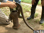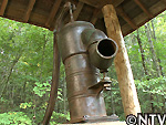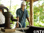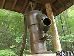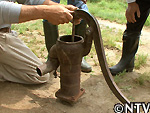 2010年4月 井戸内の清掃 茅が入り込んでしまった井戸の水は、畑の水やりだけでなく、僕らの飲み水としても使用する大切な水。井戸内を掃除し、水をきれいにすると同時に、内蓋を開放しなければ使えないこの釣瓶式井戸のシステム自体も見直す事にした。 話し合った結果、明雄さんも若い頃に使用した事がある密閉型の手押しポンプに改良する事にした。これならゴミなどが入り込む事はない。 |