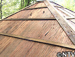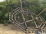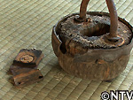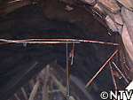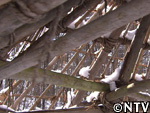 | 2010年3月 井戸の茅屋根老朽化 今年の大雪の被害を受けたのは作物だけではなかった。 7年前に井戸が完成した時に建てられた屋根の茅が、積もった雪の重みで崩れ落ちた。 その一部は、井戸水にも落ちてしまっていた。 普段、井戸は内蓋で密閉しているのだが、釣瓶式なので使用する時は開放せざるをえず、その際にこういった異物が入り込んでしまう。 |