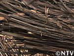 | 工程@ 傷んだ部分の除去/古茅の再利用 金沢さんにご指導頂きながら、茅の補修を開始した。 腐敗した茅は取り除き、まだ芯のしっかりした茅を土台として再利用する為、引き下げる。作業に取りかかると、とたんに舞い上がる9年分の煤や埃。9年前、僕がまだ高校生だった頃、この屋根は完成した。月日は当たり前のように過ぎていたけれど、こういった何気ない事でこの屋根の時間の堆積を実感した。 |