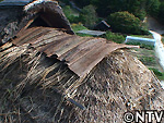 | 2010年9月 古民家の雨漏り 茅葺き屋根に挑戦し、築200年以上の日本家屋を復活させてから、すでに9年の歳月が過ぎた。その9年という時間の経過と共に傷みも生じる。古民家の傷みは茅葺き屋根の雨漏りをきっかけに発覚した。雨漏りしていた部分は、屋根の頂部・大棟。ここが一番雨風にさらされやすいので、傷みやすく、最初に症状が現れる。 |