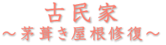 | 茅葺き屋根の補修工程 1.傷んだ茅や杉皮を取り除き、燻しの入った丈夫な古茅は土台にする。 2.新しい茅を切り揃える。 3.古い茅と新しい茅を交互に4層重ね合わせる。 4.茅を押しぼこで固定し、骨組みに結びつける。 5.雨除けの杉皮をのせ、竹簀(たけす)で固定。 6.茅をハサミで切り揃える。/杉葉で雨や雪を防ぐ。 |