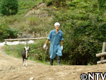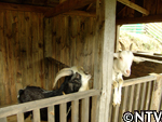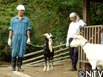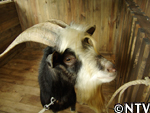 向かった先は、ヒツジの毛刈り職人ロスさんを紹介して下さった伊香保グリーン牧場。飼育員の中静さんに案内して頂き、対面するとそこにいたのは、なんと黒ヤギさん!しかも、立派なあご髭に太い角が生えており、チャコと同い年とは思えない程その雰囲気には風格があった。グリーン牧場では、見た目の印象から「ザビエル」と名付けられていた。「ザビエル」はトカラ種という日本の在来種だった。 |
