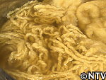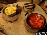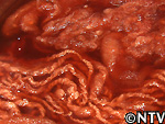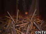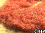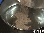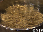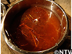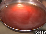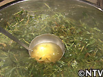 | 染色 収穫したアカネとコブナグサを水に煮出す。すると、アカネのお湯は真っ赤に染まり、コブナグサのお湯は黄色に染まった。いよいよ、毛糸をここに浸け込んでいくが、その前に毛糸に施す事があった。漉した液体に分量の羊毛を浸し、ゆっくり煮立てる。それは、草木染めをする上で重要な『媒染』という作業。 |