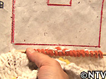 | 前身ごろと後ろ身ごろと両腕と、それぞれの部位をメンバー内で担当割し、最後に繋ぎ合わせる。TOKIOのメンバー4人全員で城島さんへのセーターを編むのだ。しかし、最後にそれぞれの部位を合わせるので全部が揃い、一つのセーターが出来上がるように編み目の目安を決めなくてはならない。その目安を元に今回作るセーターの設計図を作成したので、いよいよ編み始めだ。 僕も袖の部分をお手伝いさせてもらえる事になった。 |
