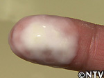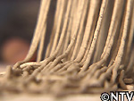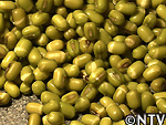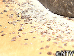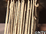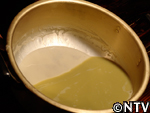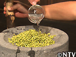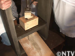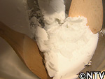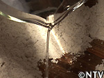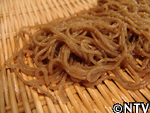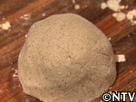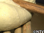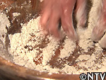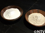 | 2010年10月 3週間後、サラシの中の緑豆でんぷんは乾燥し粉状になり、緑豆でんぷん粉が完成。収穫し、保管していた蕎麦の実も石臼で摺り、麺の材料は揃った。 |