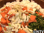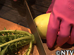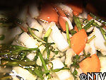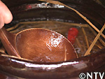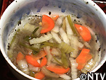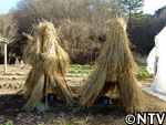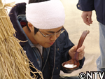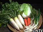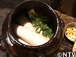2010年11月 大根・白菜収穫 水キムチと冷麺の作り方を指南して頂くべく明雄さんの知り合いである韓国人のチョン・ラクスンさん、通称楽ちゃんを村に迎えた。楽さんに教わりつつキムチ用の壷・ハンアリに入る小ぶりの大根と芯が固めな白菜を選んで収穫し、水キムチづくりを開始した。 |