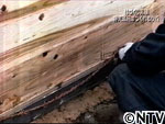 こうすることで、水が漏れてきたら杉の樹皮が水を吸い取って膨らみ、