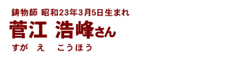 菅江さんは江戸時代より続く鋳物師の家系の10代目。菅江さんの作る梵鐘は各方面で高い評価を受けている。