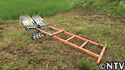 - 車輪型の鋭い刃で雑草の根を浮かし除草する道具。