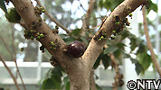 - 木の幹に直接、白い花が咲き、その後、大きさ・色・味ともに巨峰によく似た実がなる。