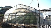 - 二重のハウスの一重にスプリングクラーで15℃の地下水をかける
