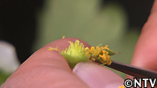 ①母親(開花前の未熟な花)にする花の雄しべを取り除き、雌しべのみに。