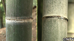 • モウソウチク:節が1輪で節間が短く太い。稈は地面に近い部分が太い。