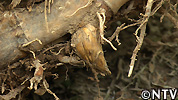 クワを入れる場所はタケノコの穂先が向いている側と同じ方向にクワを入れる。反対からクワを入れると地下茎の下に入り、なかなか収穫できない。