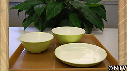 伐採竹を粉末化した竹繊維と、とうもろこしから作られたPLA(生分解性樹脂)を比重51%と49%で混ぜ合わせたもの。割れて使えなくなったとしても1年で土に戻る。八女市の全小中学校に導入されている。