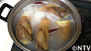 お湯から茹でると、中心と外側の煮え具合に差ができて食感が悪くなるので水から茹でる。