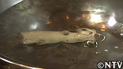 2. 1時間ほど待ち、全体をかき混ぜてから、ミルクの流れを止め、レンネット(凝乳酵素)を入れる。