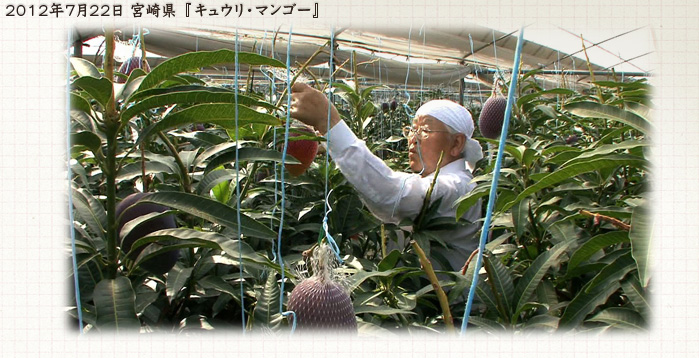 宮崎県でマンゴー栽培が始まった当初はマンゴーが完熟になる前に収穫していたが、なかなか美味しいマンゴーができなかった。しかし、ある年たまたま自然落下したマンゴーが、それまでにないおいしさだった事から、樹上で自然落下するマンゴーをネットで受け止める完熟マンゴーが生まれた。今では、宮崎県内の全てのマンゴーがネットをかけて栽培されている。