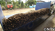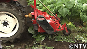 収穫する前にチョッパーと呼ばれる葉の粉砕機で、葉を刈る。
