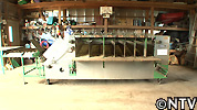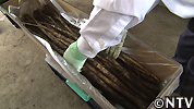 収穫したごぼうは、ごぼう選別機「らくべー」でサイズごとに分ける。ごぼうをトレーに乗せて流すだけで、2S~3Lの7サイズに重さで選別してくれる。選別後は、鮮度を保つため土付きのまま箱に詰めて出荷する。