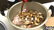 1. 鍋に手羽元、その上からごぼうを直接斜め切りに、手羽元が隠れる位入れる。