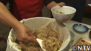 餅米にごぼうのささがきをたっぷり入れ、2度ふかしている。