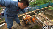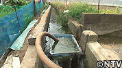 木の根元には1本の長いパイプが通してあり、近くのため池から引いてきた水をポンプで汲み上げ、水をパイプに通し、水やりをしている。中出農園では土の状態を毎日確認し、夕方の涼しい時間帯に水やりをしている。