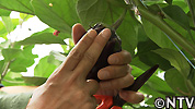 水なすは皮が薄く柔らかいため、風でゆれた葉っぱが実に当たっただけでも傷がついてしまう。