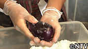 水なすは縦切りがオススメ。縦に切ると繊維を壊しにくく、水なす本来のみずみずしさを保てるという。