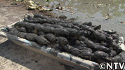 白石町のレンコンは泥付きで出荷しているため、レンコン畑の泥をレンコンにのせ陸へ運ぶ。