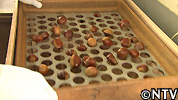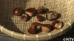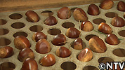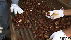 1. 選果台に栗をならべ、虫喰いや病気のものを取り除く。